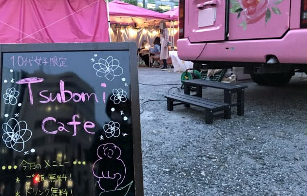 4月中旬の平日夜、東京都渋谷区の公園にピンク色のバスとテントが現れた。一…