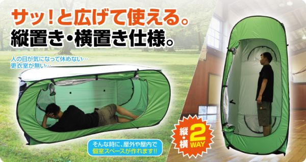 「シェルターテント」は10秒で組み立てることができ、災害時の避難所やアウトドアでプライバシーを確保できるおひとり様用テントです。