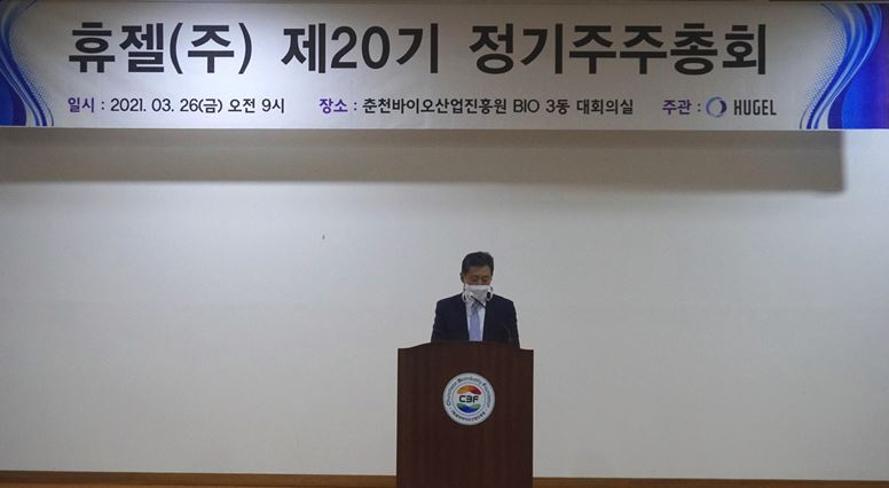 휴젤은 26일 회사 본사가 위치한 강원도 춘천시 춘천바이오산업진흥원에서 제20기 정기주주총회를 개최했다.