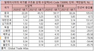 By olkin Monday, July 5, 2021 시장 (해외시장 리포트) 말레이시아 구조용 강재 시장 - 철강금속신문 1분기 한국산 구조용 강재 수입액 전년 比 151.6% 증가, 시장점유율 5.1% 기록 코로나19 상황이 말레이시아 건설 경기 회복에 변수로 작용할 것 유료회원으로 가입하시면 전체 기사와 사진을 보실 수 있습니다. 저작권자 © 철강금속신문 무단전재 및 재배포 금지 Adblock test (Why?) 기사 및 더 읽기 ( (해외시장 리포트) 말레이시아 구조용 강재 시장 - 철강금속신문 ) https://ift.tt/3jMI5h0 시장 Bagikan Berita Ini