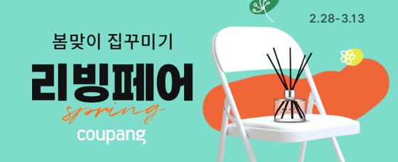 쿠팡은 133개 국내외 유명 브랜드가 참여하는 '봄리빙페어'를 13일까지 진행한다. 대표상품으로는 Δ라뽐므 노르빅 차렵이불 Δ조은리빙 이동접이식 빨래건조대 Δ기라로쉬 코마사 코지 홈 타월 Δ쿤달 퍼퓸 내추럴 소이 캔 Δ더릭스홈 9존 마약매트리스 Δ웰퍼니쳐 아쿠아텍스 4인 소파 등이 있다.