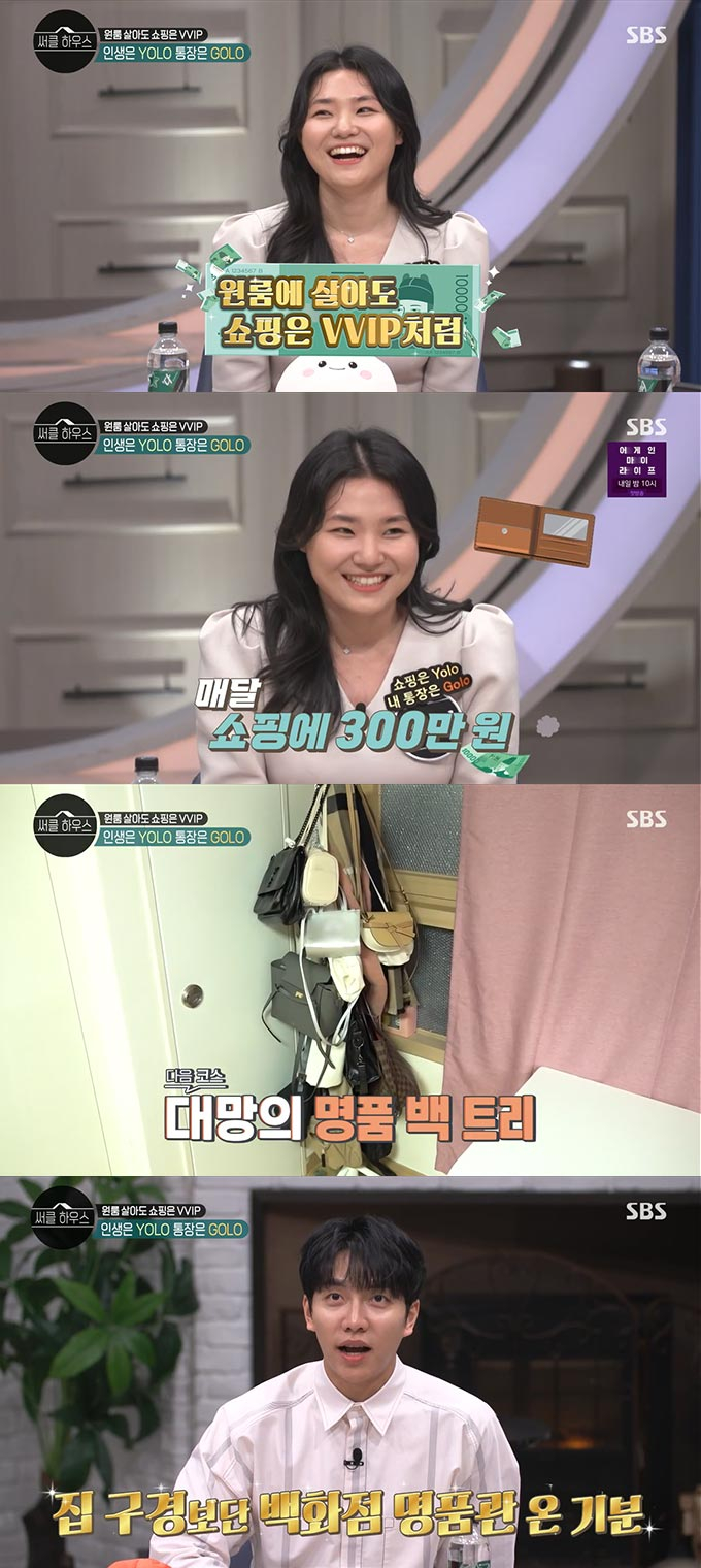 오늘이는 "나는 저축을 월급 1% 정도 한다"며 "주택 청약 3만원씩 넣고 있다"고 밝혔다. 그는 월급을 받으면 한달에 쇼핑에만 300만원을 쓴다고 밝혀 모두를 놀라게 했다. 그는 월급 대부분을 옷과 가방에 쓴다고 고백했다. 계획된 금액 안에서 쇼핑을 즐긴다고 했다.