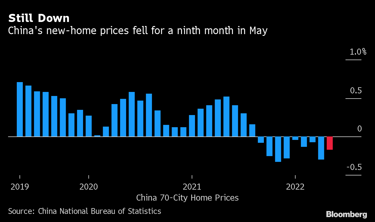 China's new-home prices fell for a ninth month in May