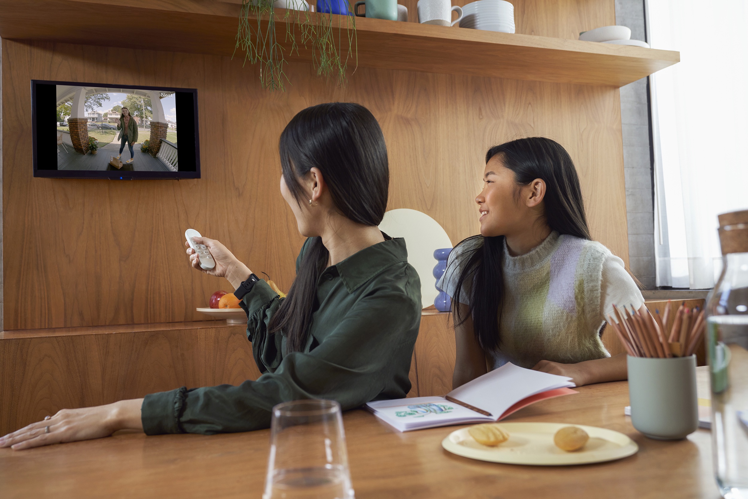 付属する音声リモコンは持ちやすく、使いやすく、新機能が満載で、専用の「Google アシスタント ボタン」を搭載し、見たいものを見つけたり、「今日の天気は?」などといった日常の質問に答えたり、声だけで「YouTube Music」を操作したり、ソファでくつろいで映画を観たいときにはスマートホームの照明を制御することも可能です。