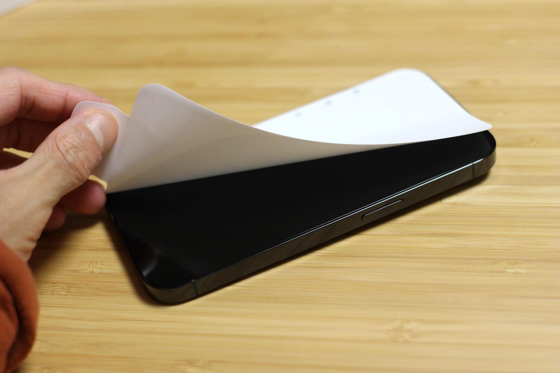 さらに以前は本体を保護するために貼られているシートも従来は透明なものでしたが、iPhone 12シリーズからコスト削減のためか白いシールとなっており、保護シートは前面だけで、背面にはありません。シートを剥がしたら本体右側にある電源キーを長押しして電源をオンにし、初期設定を行っていきます。