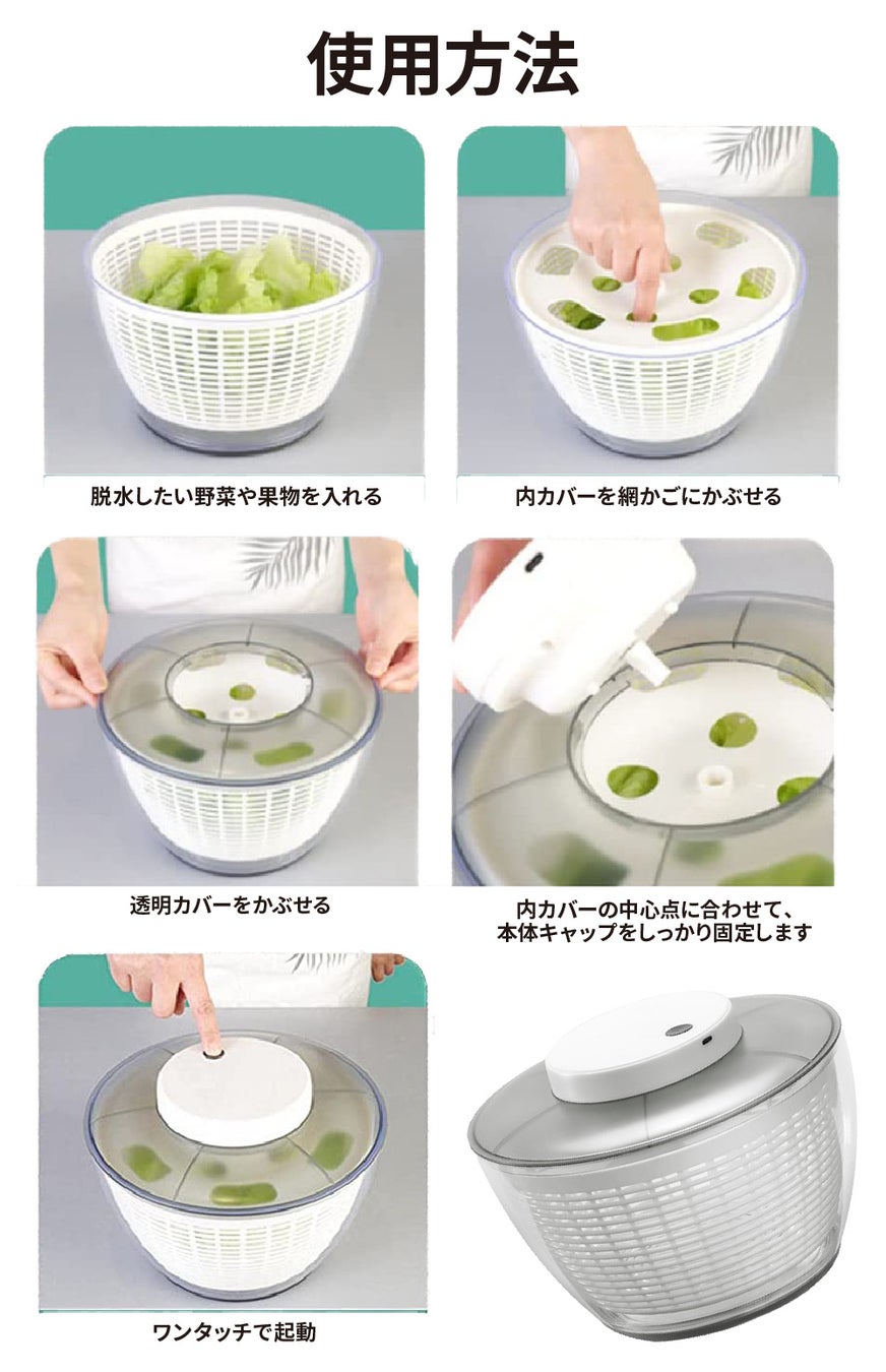 1.電気サラダスピナー×1、USBケーブル×1 |